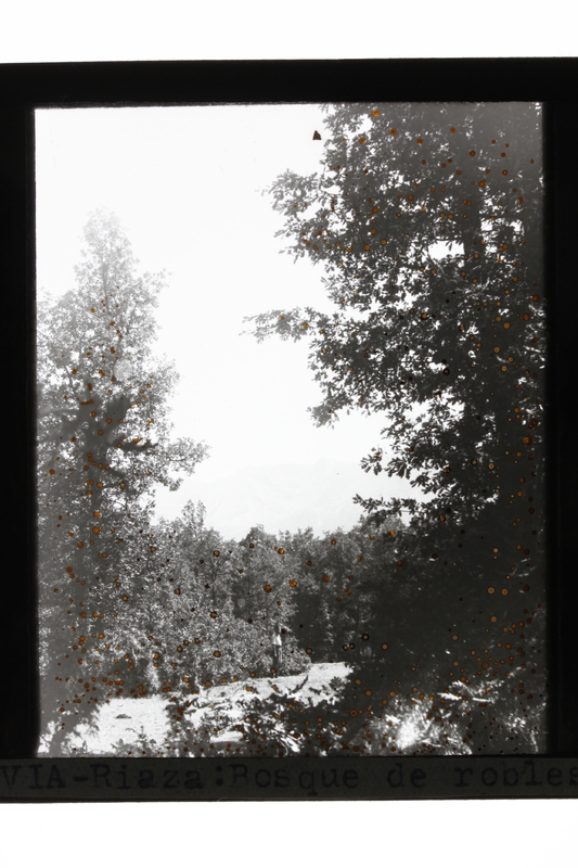 - Título tomado de la tira mecanografiada en el borde inferior, con nota manuscrita al verso: "Segovia. Riaza. Bosque de robles"