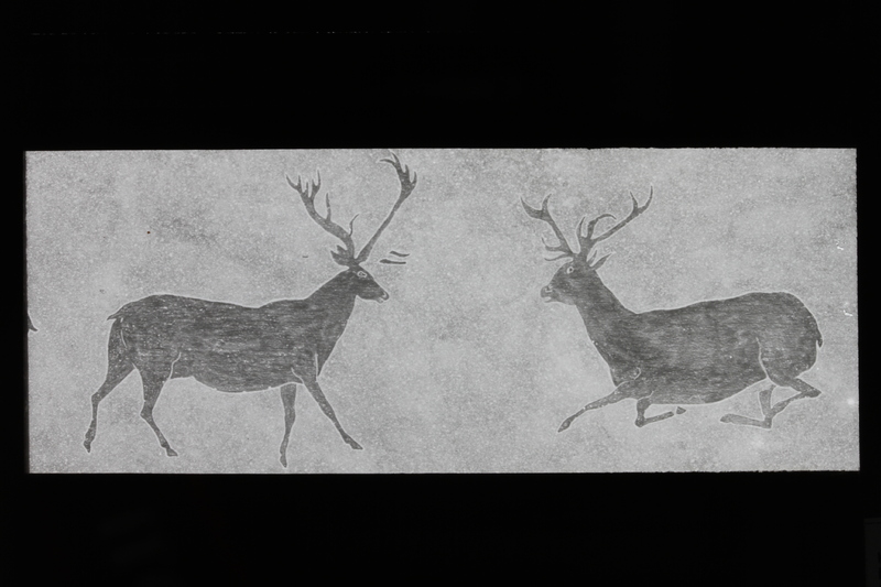 - Fotografía del dibujo de dos ciervos de las pinturas rupestres de Calapatá, Teruel