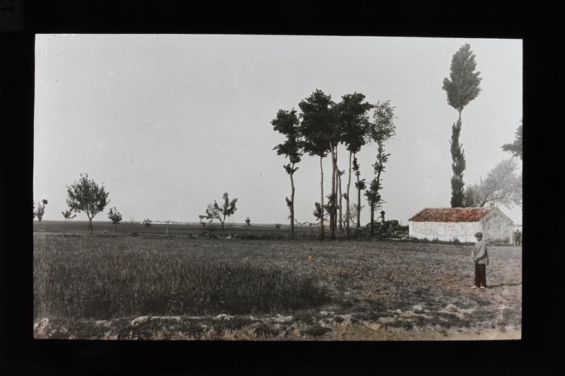 - Un joven en una llanura con algunos árboles y una vivienda, en la zona de Quintanar de la Orden, Toledo