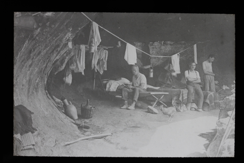 - Grupo de hombres acampados en las Cuevas de la Araña de Bicorp, Valencia