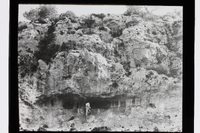 - Un hombre junto a la entrada de las Cuevas de la Araña, Bicorp