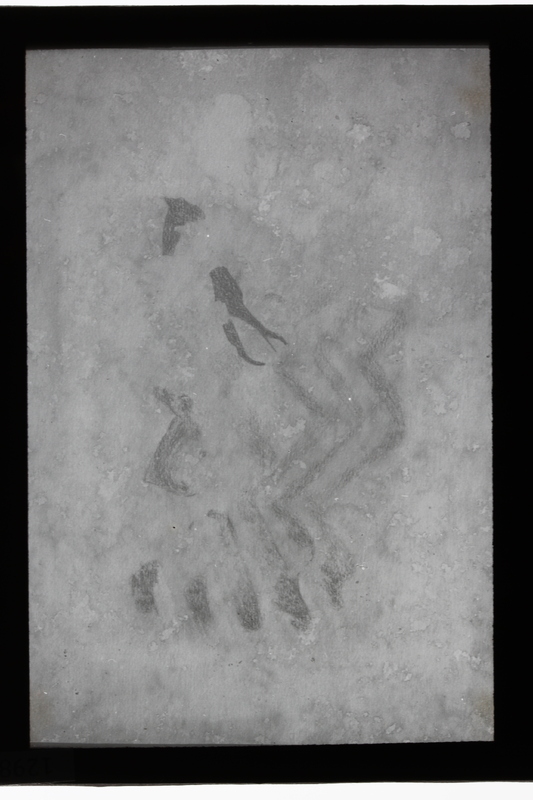 - Dibujo de restos de pinturas rupestres de las Cuevas de la Araña en Bicorp, Valencia