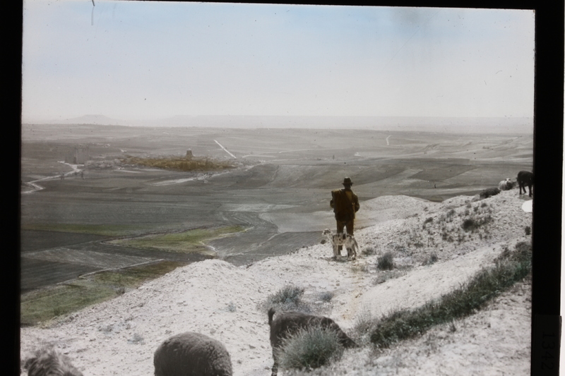 - Un pastor junto a su perro contemplan desde un cerro la campiña del río Pisuerga y Fuensaldaña al fondo