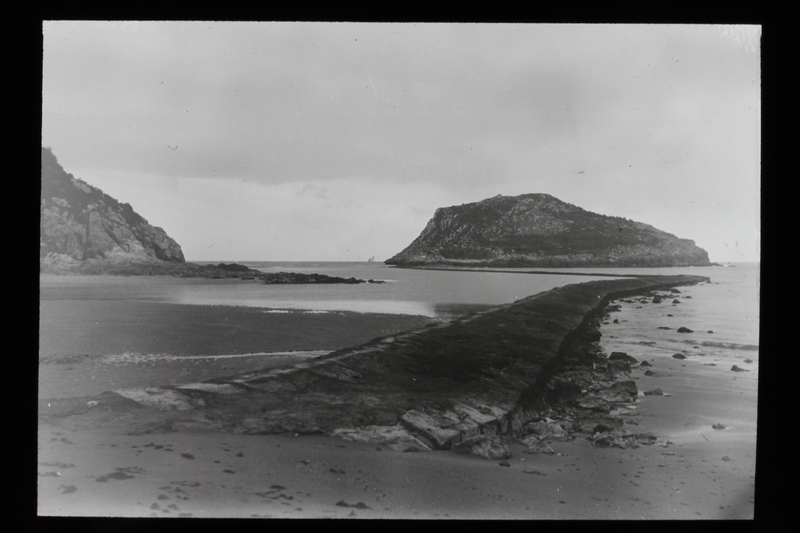 - Vista del dique y tómbolo de la Isla Garraitz (también denominada Isla San Nicolás y Lumencha) en Lequeitio, Vizcaya