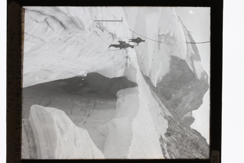 - Dos hombres al borde de una grieta del glaciar de la Maladeta en los Pirineos