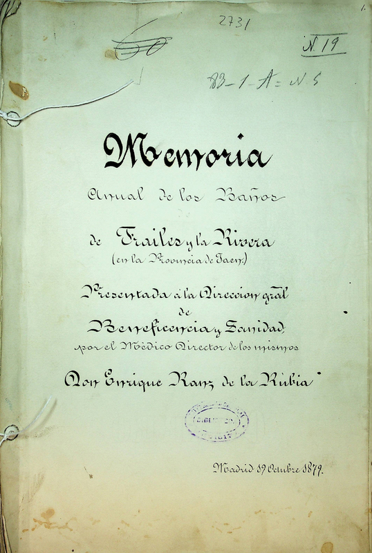 Memoria anual de los Baños de Frailes y la Rivera (en la provincia de Jaen) presentada á la Direccion gral de Beneficencia y Sanidad por el Medico-Director de los mismos Enrique Ranz de la Rubia, Madrid, 19 Octubre 1879