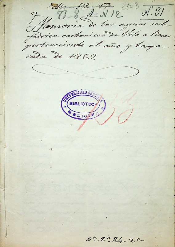 Memoria de las aguas sulfidrico-carbonicas de Vilo o Rosas perteneciente al año y temporada de 1862