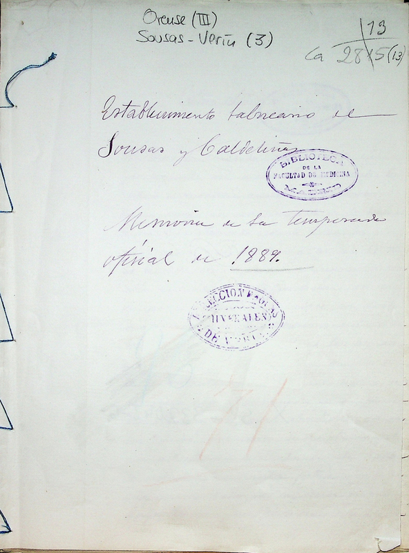 Establecimiento balneario de Sousas y Caldeliñas : memoria de la temporada oficial de 1889