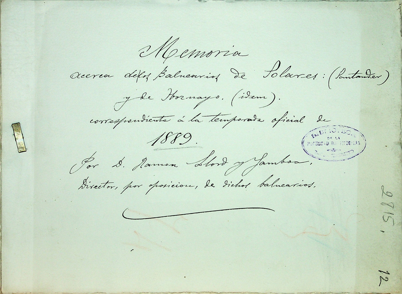Memoria acerca de los balnearios de Solares (Santander) y de Hoznayo (idem), correspondiente á la temporada oficial de 1889