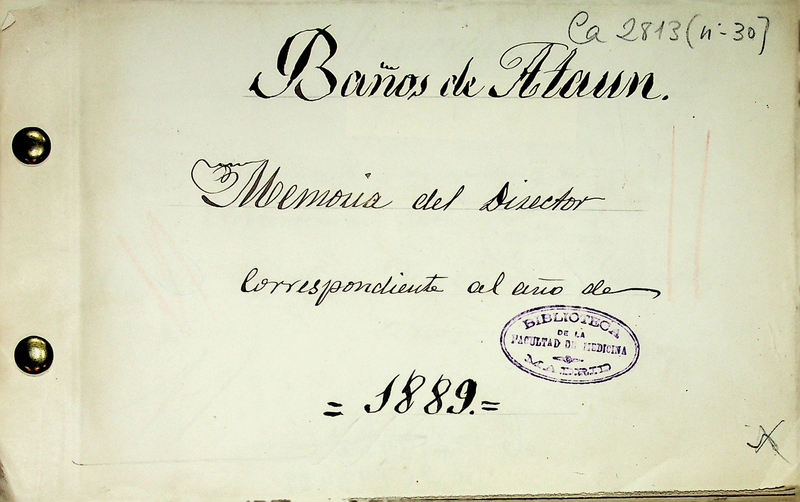 - Tít. de la anteportada: Baños de Ataun, memoria del Director correspondiente al año de 1889