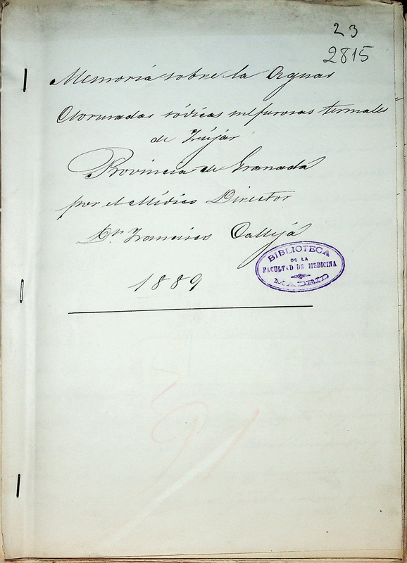 Memoria sobre las aguas cloruradas sódicas sulfurosas termales de Zújar, provincia de Granada : 1889