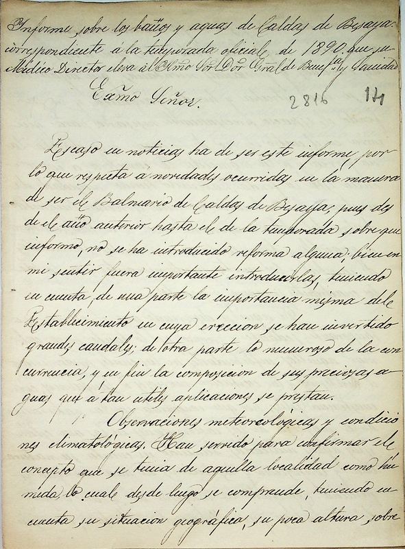 Informe sobre los baños y aguas de Caldas de Besaya correspondiente á la temporada oficial de 1890 que su Médico Director eleva al Ilmo. Sor. Dor. Gral. de Benefa. y Sanidad
