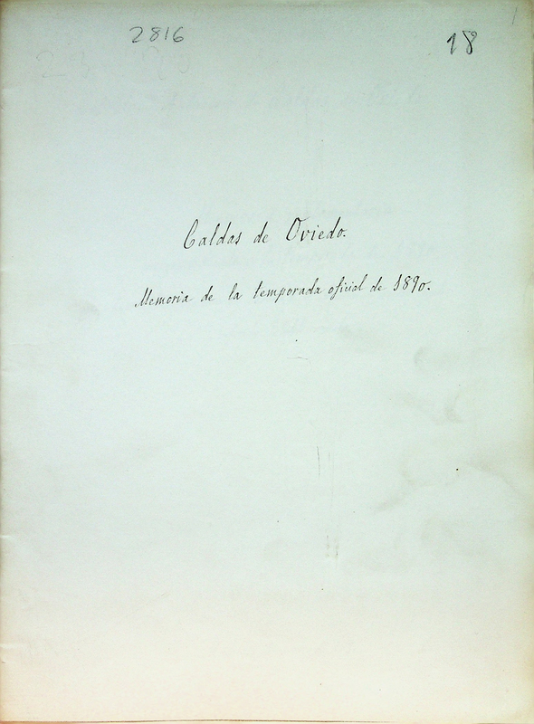 - La anteportada con el rótulo "Caldas de Oviedo, Memoria de la temporada oficial de 1890"
