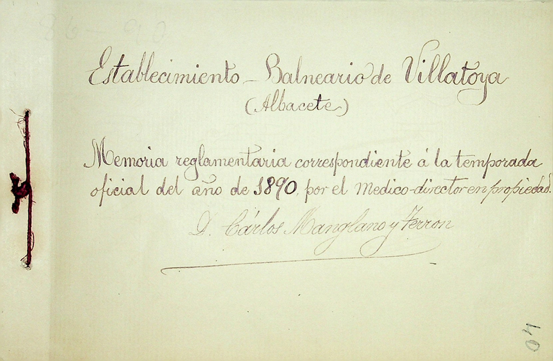Establecimiento balneario de Villatoya(Albacete) : memoria reglamentaria correspondiente á la temporada oficial del año de 1890