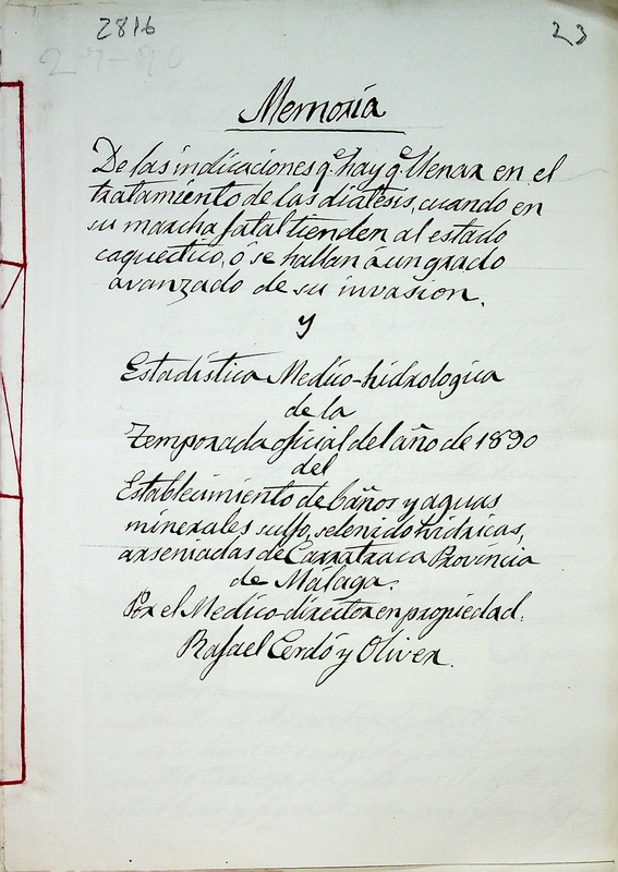 Memoria de las indicaciones que hay que llenar en el tratamiento de las diatesis cuando en su marcha fatal tienden al estado ...y estadística médico-hidrologica de la temporada oficial del año de 1890..