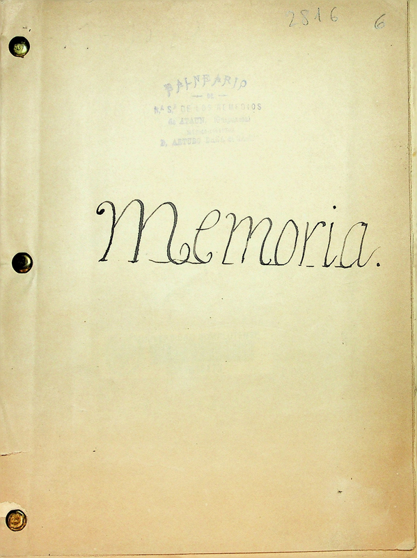 Memoria acerca del Balneario de Nra. Sra. de Los Remedios de Ataun (Guipúzcoa) que en cumplimiento de los preceptos reglamentarios tiene el honor de elevar á la Direccion Gral. de Beneficencia y Sanidad en la temporada de 1890 D. Arturo Daza de Campos médico-director que ha sido durante la misma en dicho establecimiento
