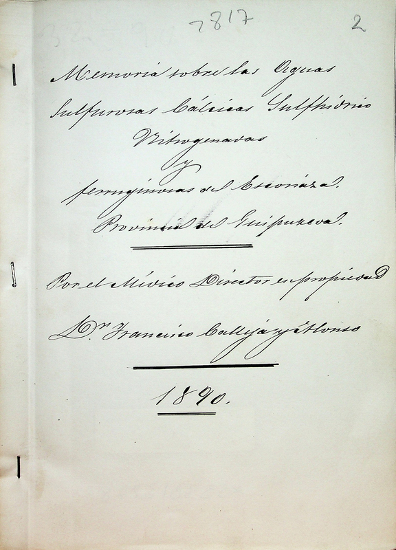 Memoria sobre las aguas sulfurosas cálcicas sulfhidríco nitrogenadas y ferruginosas de Escoriaza, provincia de Guipuzcoa : 1890