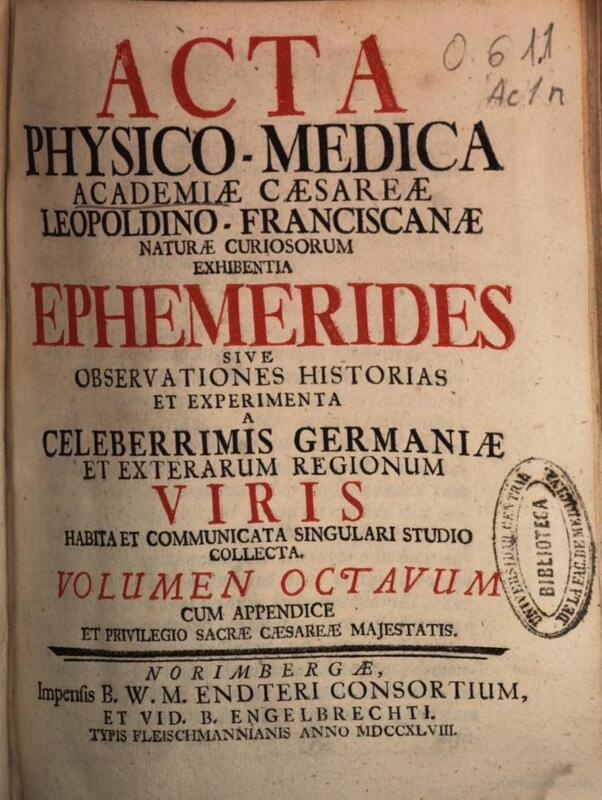 - Acta physico-medica Academiae Caesareae Leopoldino-Carolinae naturae curiosorum exhibentia ephemerides