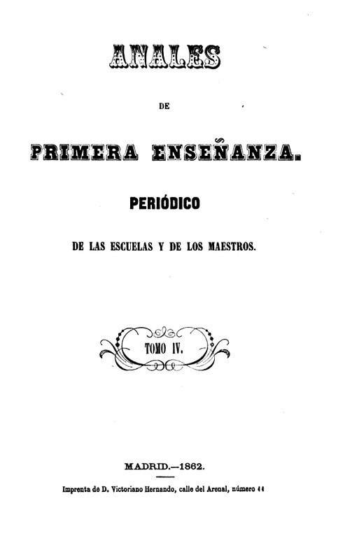 Anales de primera enseñanza : periódico de las escuelas y de los maestros ‐ [1862]