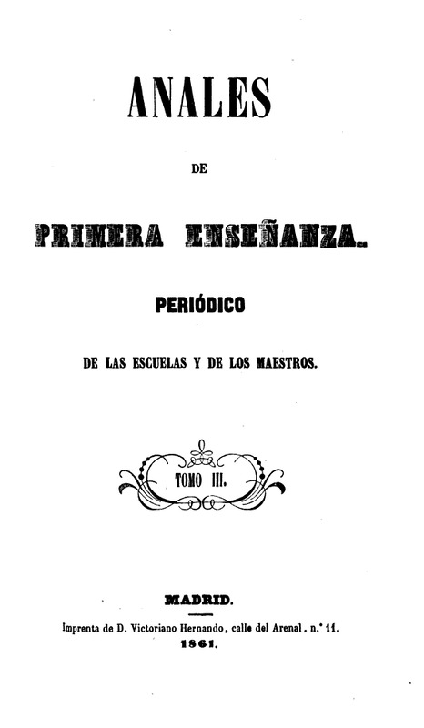 Anales de primera enseñanza : periódico de las escuelas y de los maestros ‐ [1861]