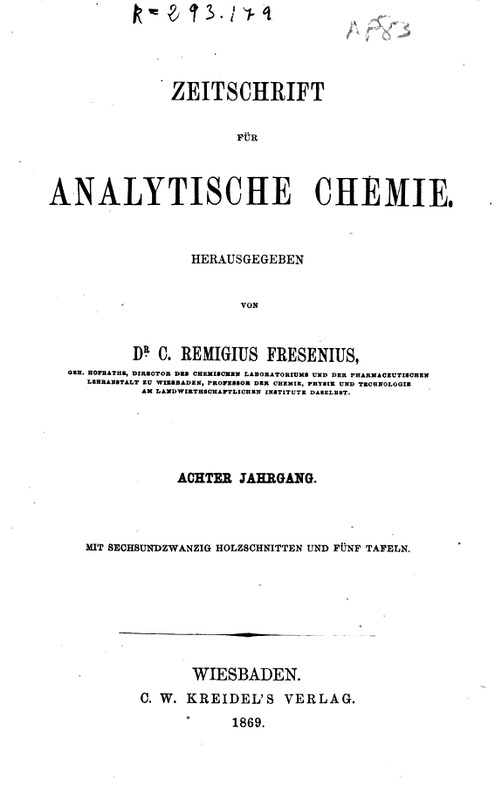 Zeitschrift für analytische Chemie ‐ [Vol. 8, Año 1869]