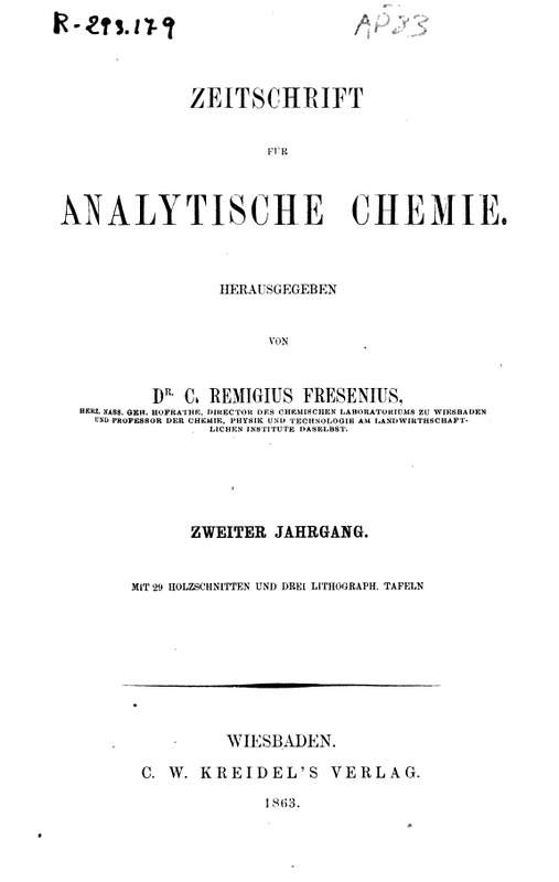 Zeitschrift für analytische Chemie ‐ [Vol. 2, Año 1863]