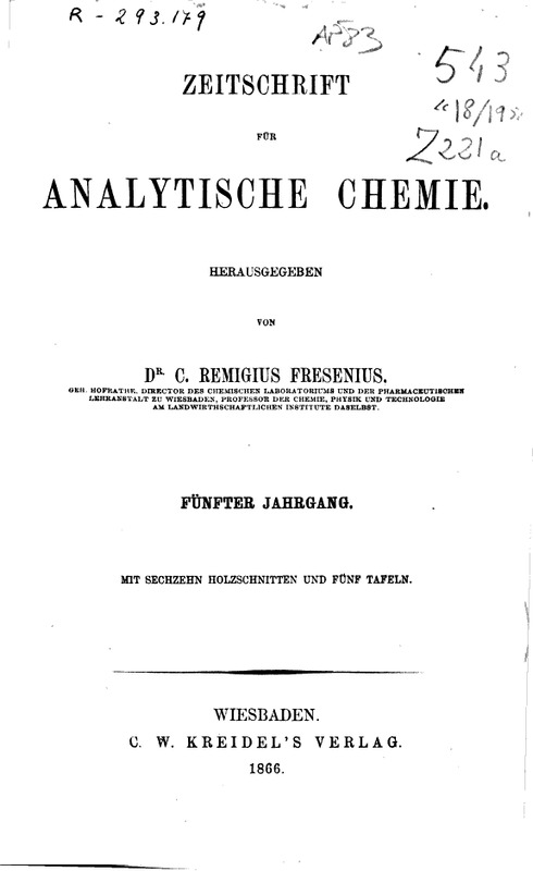 Zeitschrift für analytische Chemie ‐ [Vol. 5, Año 1866]