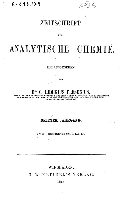 Zeitschrift für analytische Chemie ‐ [Vol. 3, Año 1864]