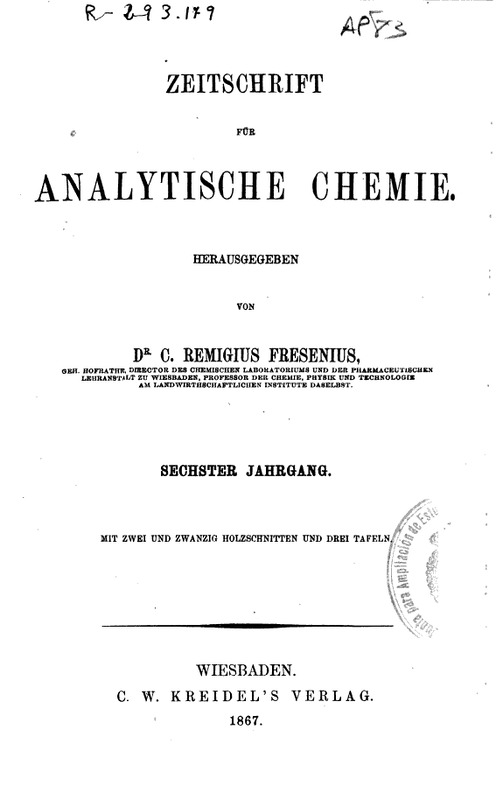 Zeitschrift für analytische Chemie ‐ [Vol. 6, Año 1867]