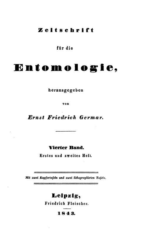 Zeitschrift für die Entomologie ‐ [1843 (vol. 4, n. 1-2)]