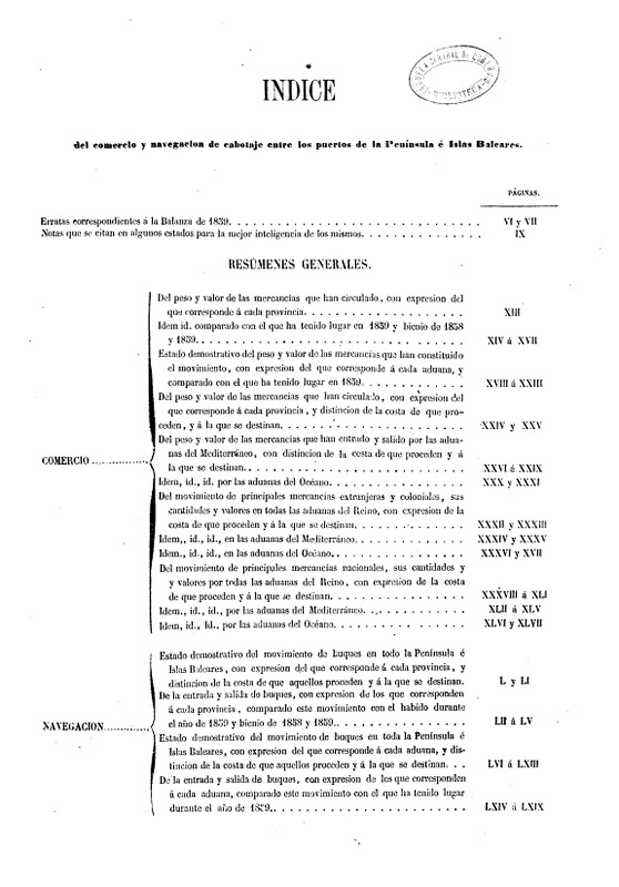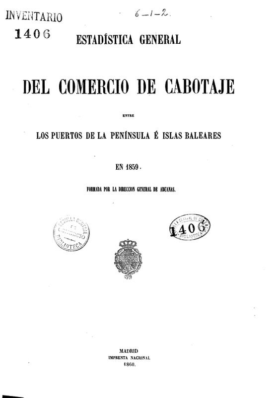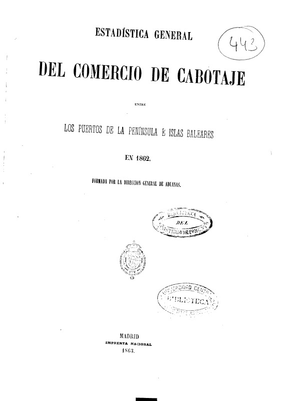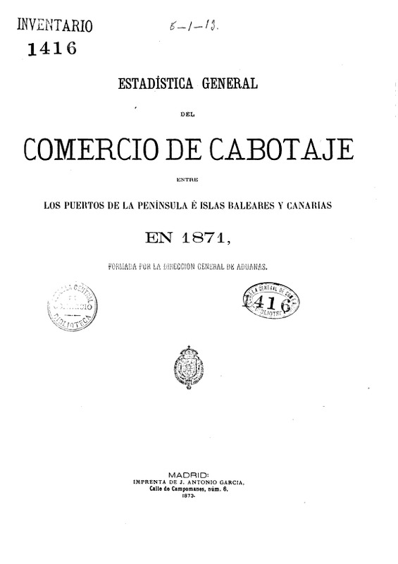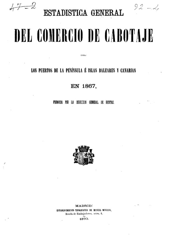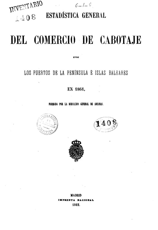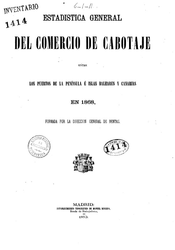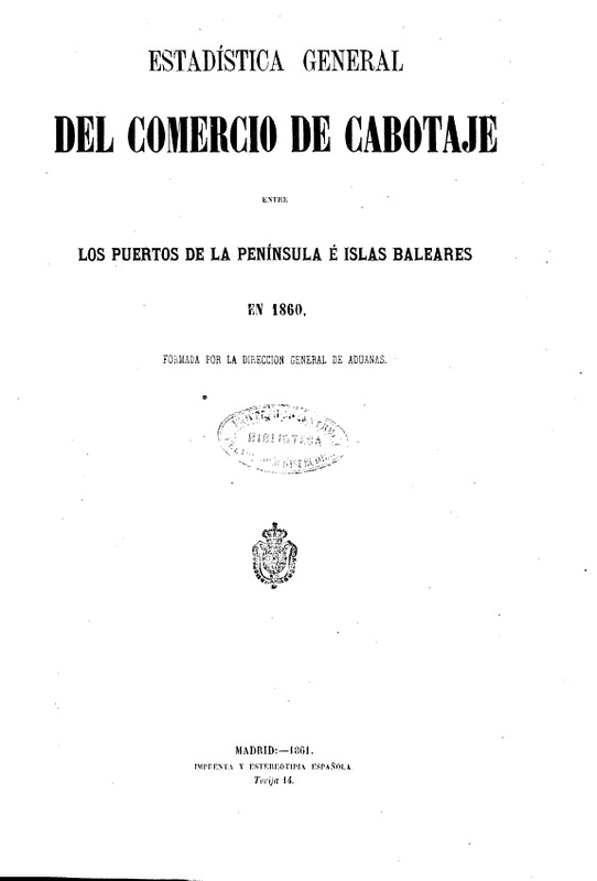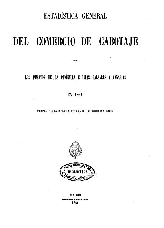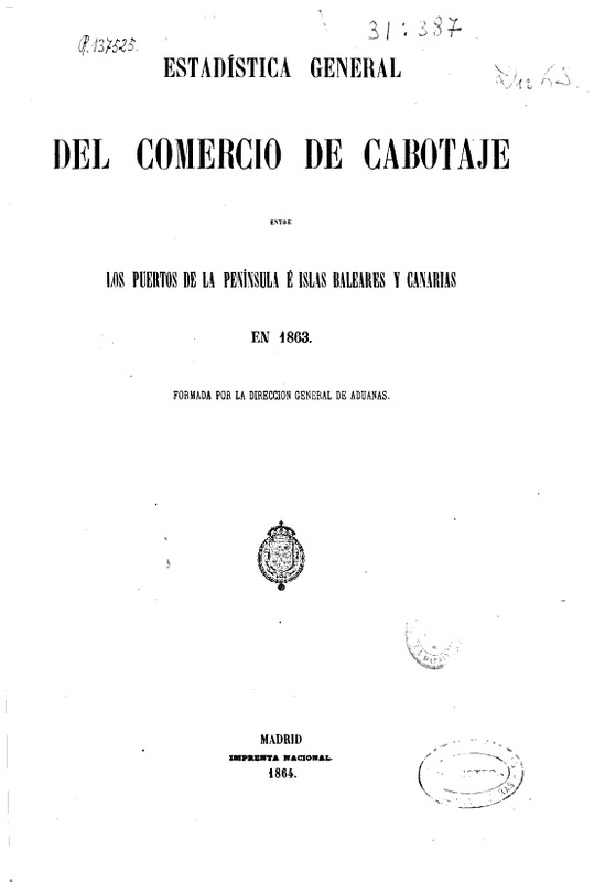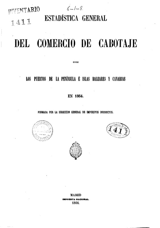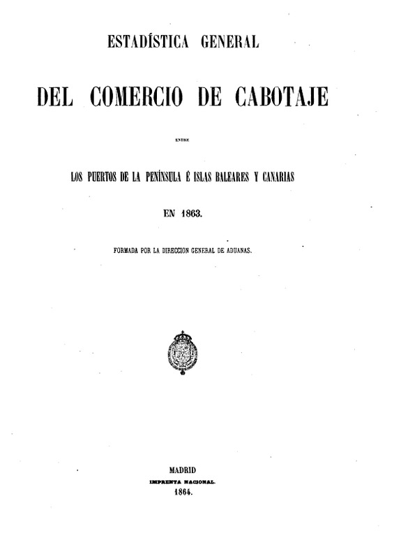 - De 1863-1871 el tít.: "Estadística general del comercio de cabotaje entre los puertos de la Península e Islas Baleares y Canarias"