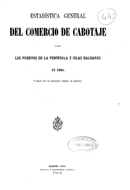 Estadística general del comercio de cabotaje entre los puertos de la Península e Islas Baleares ‐ [1860]