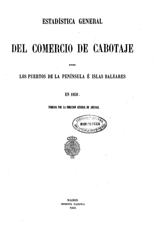 Estadística general del comercio de cabotaje entre los puertos de la Península e Islas Baleares ‐ [1859]