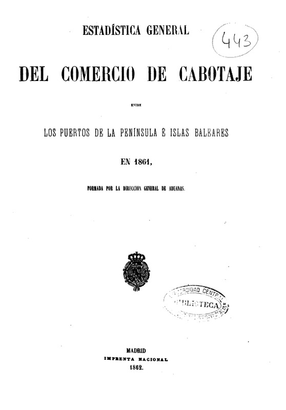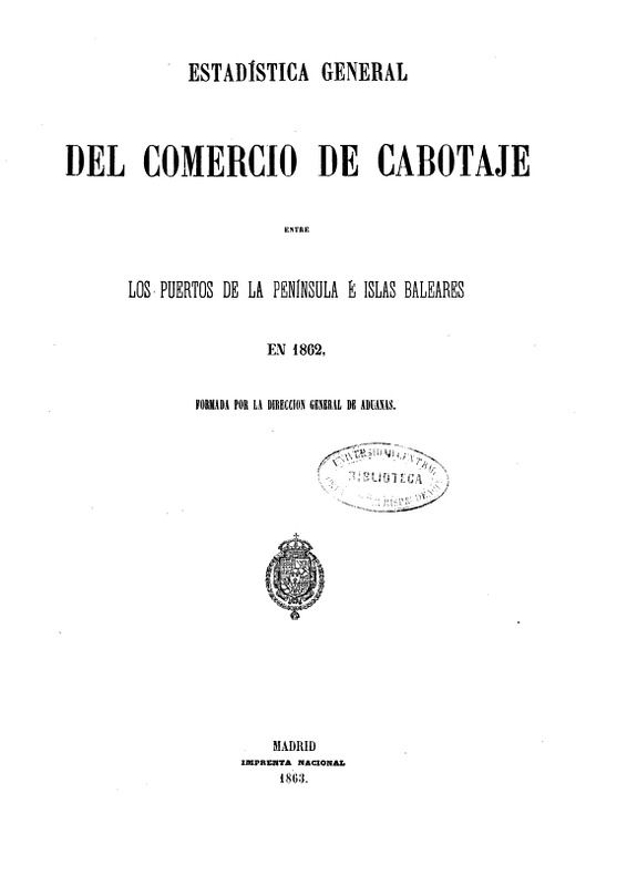 Estadística general del comercio de cabotaje entre los puertos de la Península e Islas Baleares ‐ [1862]