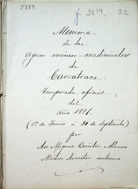 Memoria de las aguas minero-medicinales de Carratraca, temporada oficial del año 1891 (15 de junio á 30 de septiembre)
