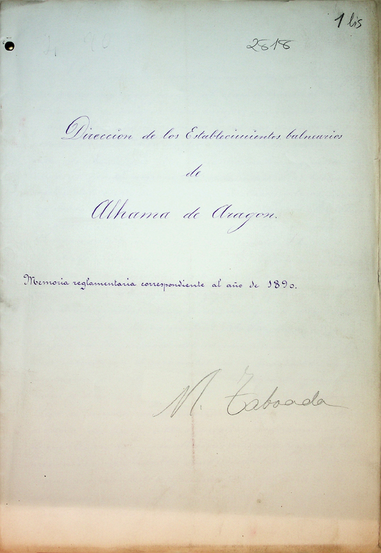 Direccion de los Establecimientos balnearios de Alhama de Aragon : memoria reglamentaria correspondiente al año de 1890