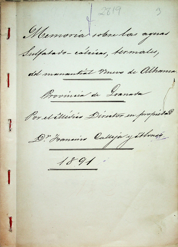 Memoria sobre las aguas sulfatado-cálcicas, termales, del manantial nuevo de Alhama, provincia de Granada