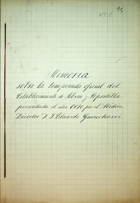 Memoria sobre la temporada oficial del establecimiento de Sobron y Soportilla presentada el año 1890