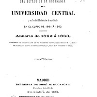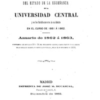 Memoria acerca del estado de la enseñanza en la Universidad Central y en los establecimientos de su distrito incorporados a la misma durante el curso de... y anuario de.. ‐ [Curso 1861-1862; Anuaria 1862-63]