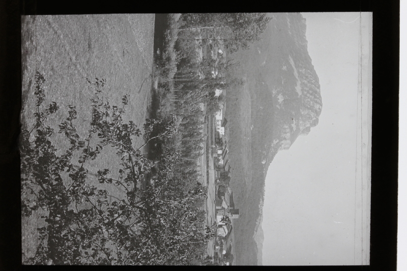 - Vista de la localidad de Lacunza con el monte San Donato al fondo