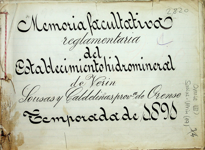 Memoria facultativa reglamentaria del establecimiento hidromineral de Verin Sousas y Caldeliñas, prova. de Orense : temporada de 1891
