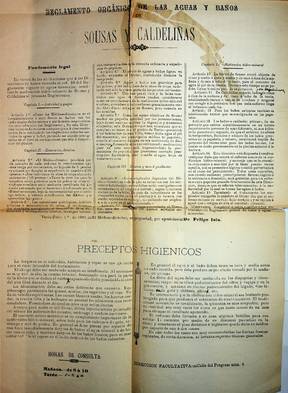 Reglamento orgánico de las aguas y baños de Sousas y Caldeliñas
