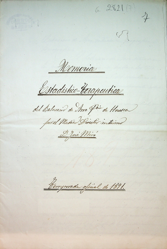 Memoria estadistico-terapeutica del balneario de Arro, provincia de Huesca