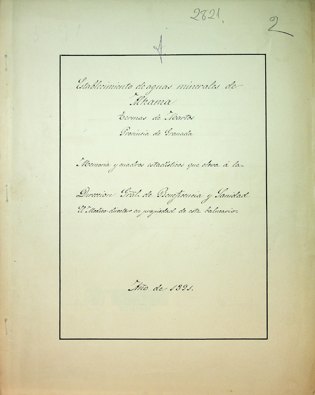 Establecimiento de aguas minerales de Alhama, termas de Martos, provincia de Granada : memoria y cuadros estadísticos que eleva á la Direccion Gral de Beneficencia y Sanidad el medico-director en propiedad de este balneario, año de 1891