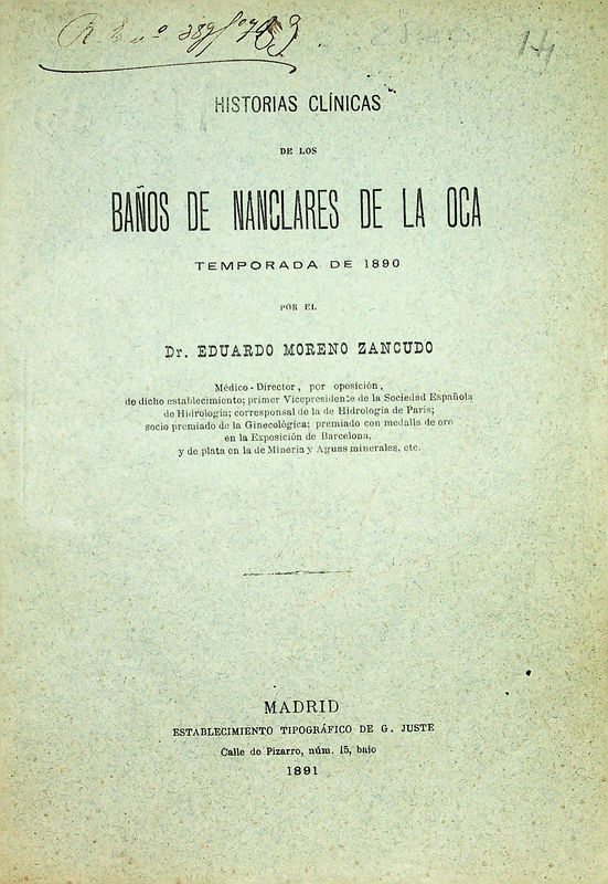 Historias clínicas de los baños de Nanclares de la Oca : temporada de 1890 ‐ [Ejemplar!Ej.!r 1]