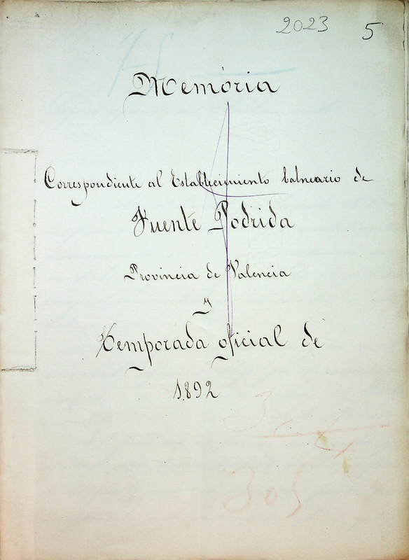 Memoria correspondiente al establecimiento balneario de Fuente-Podrida, provincia de Valencia, y temporada oficial de 1892