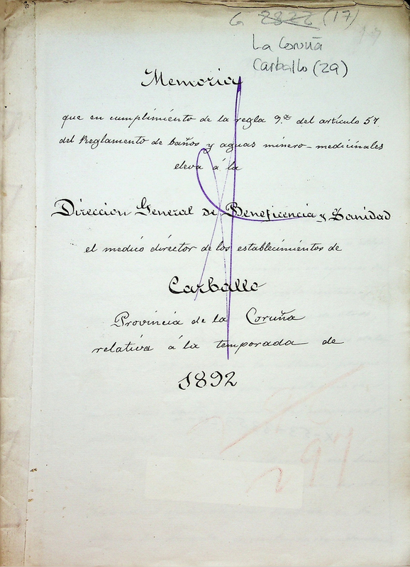 Memoria que en cumplimiento de la regla 9a del artículo 57 del Reglamento de baños y aguas minero-medicinales eleva á la Direccion General de la Beneficencia y Sanidad el médico-director de los establecimientos de Carballo, provincia de la Coruña, relativa á la temporada de 1892