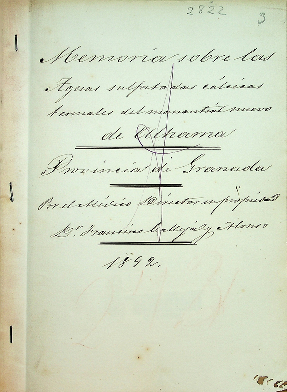 Memoria sobre las aguas sulfatadas cálcicas termales del manantial nuevo de Alhama, provincia de Granada : 1892