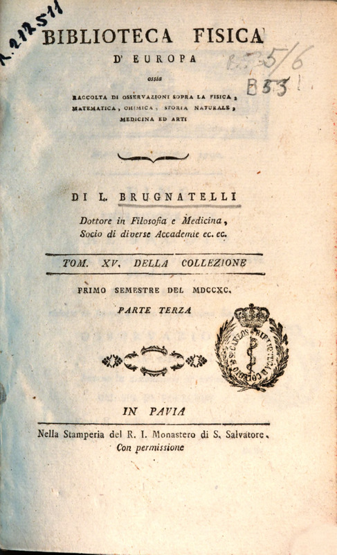 Biblioteca Fisica d'Europa ‐ [T. XV]