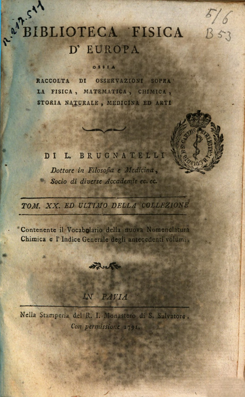 - Brugnatelli, Luigi Vincenzo, ed. lit.